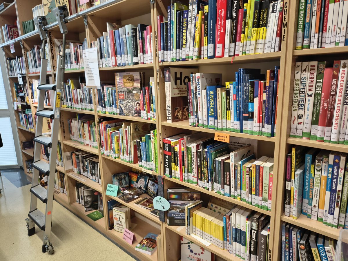 Lesebegeisterte Schülerinnen und Schüler finden in unserer Schulbibliothek Literatur zu fast allen Themen und interessante Spiele für die Pause. Nahezu monatlich kommen aktuelle Bücher, Spiele und Zeitschriften hinzu. Wer möchte, übernimmt in einigen Pausen den Bibliothekdienst und kann Regale und Auslagen dekorieren, für Ordnung sorgen, Mitschüler beraten und als erste/r unsere Neuanschaffungen sichten.